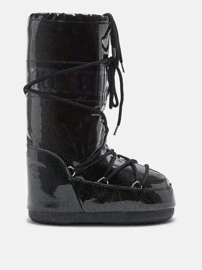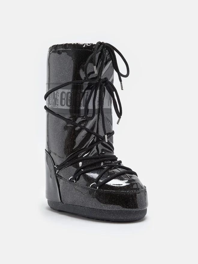 Buy Icon Black Glitter Boots for Woman on Moon Boot Official Online Store. Discover the Collection on the Official Brand Website.