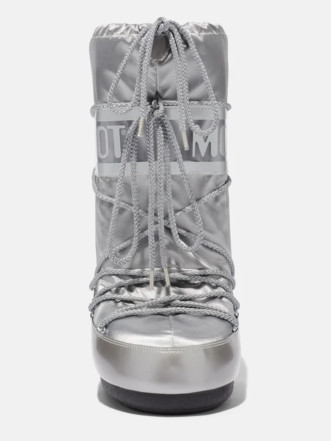 Buy Icon Glance Silver Satin Boots for Woman on Moon Boot Official Online Store. Discover the Collection on the Official Brand Website.