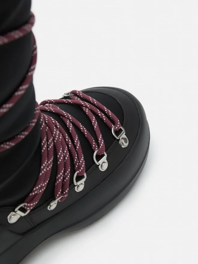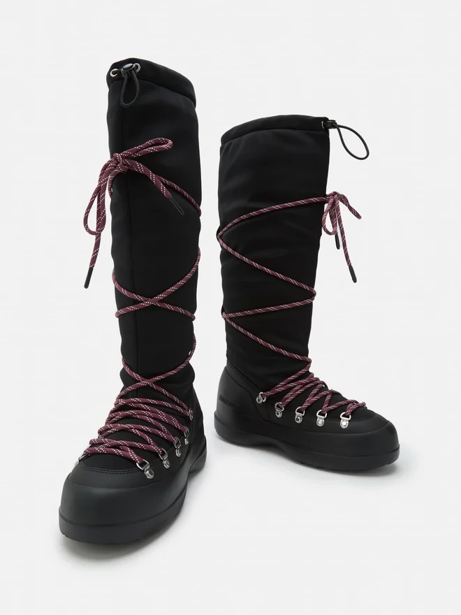 Power up Your Look with the Luna Boots – Where Heritage Design Meets City Flair. The Statement Knee-High Silhouette is Wrapped in Criss-Cross Laces That Hark Back to the Moon Boot Icon, While the Chunky Contoured Soles Lend a Subtle Lift, Without Sacrificing Support, Comfort or Grip. Your Go-To for Fearless Moves Wherever the Day Leads.