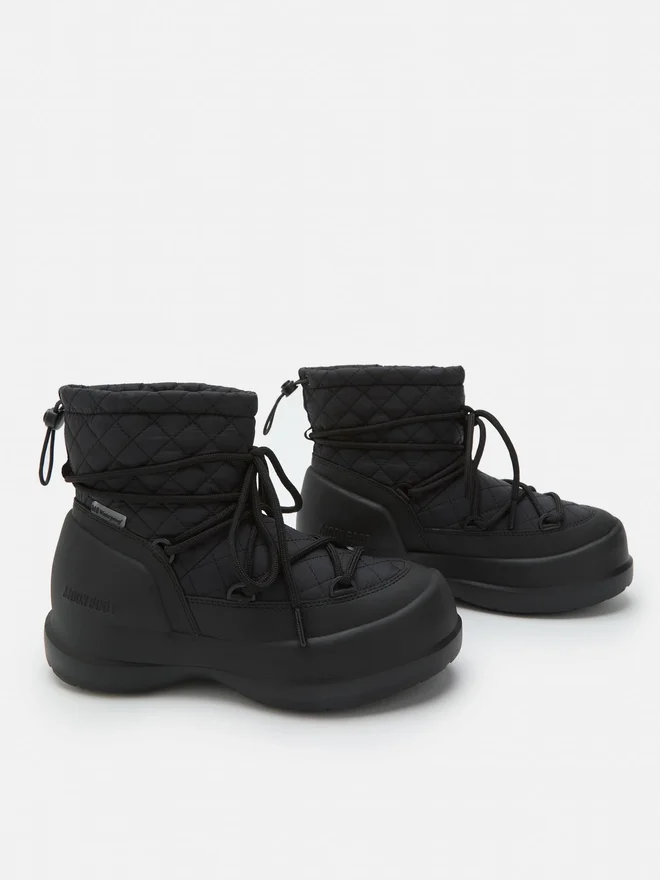 Buy Mezzaluna Mid Black Quilted Boots for Woman on Moon Boot Official Online Store. Discover the Collection on the Official Brand Website.