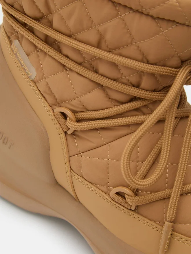 Buy Mezzaluna Mid Camel Quilted Boots for Woman on Moon Boot Official Online Store. Discover the Collection on the Official Brand Website.